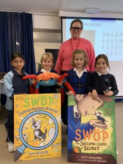 Her picture book is all about saving the world and looking after our environment, encouraging us to think about the ways we can help protect our planet. Her chapter books tell the exciting adventures of a girl named Ernie and a tiny dog she finds called Swop. Together, they go on fun and imaginative adventures which really captured the children’s interest!