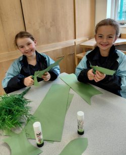 Year 3 were lucky enough to have the workshop with the artists and this year the theme was Christmas songs from around the world. The particular tableau which we were working on was “Christmas in Hawaii” by Bing Crosby and, as Year 3 carefully created wired palm trees in different shades of green, they listened to an Hawaiian Christmas song! A very different approach to Christmas than we were expecting, but the girls worked very hard and the palms looked fabulous.